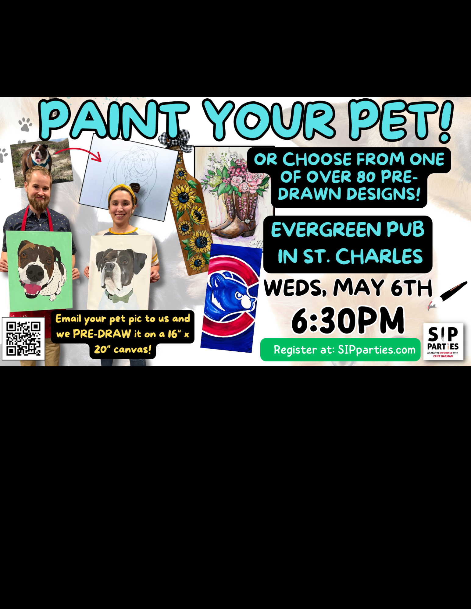 Paint your pet! OR choose a pre-drawn design @ Evergreen Pub in St. Charles 5/6/26 6:30PM