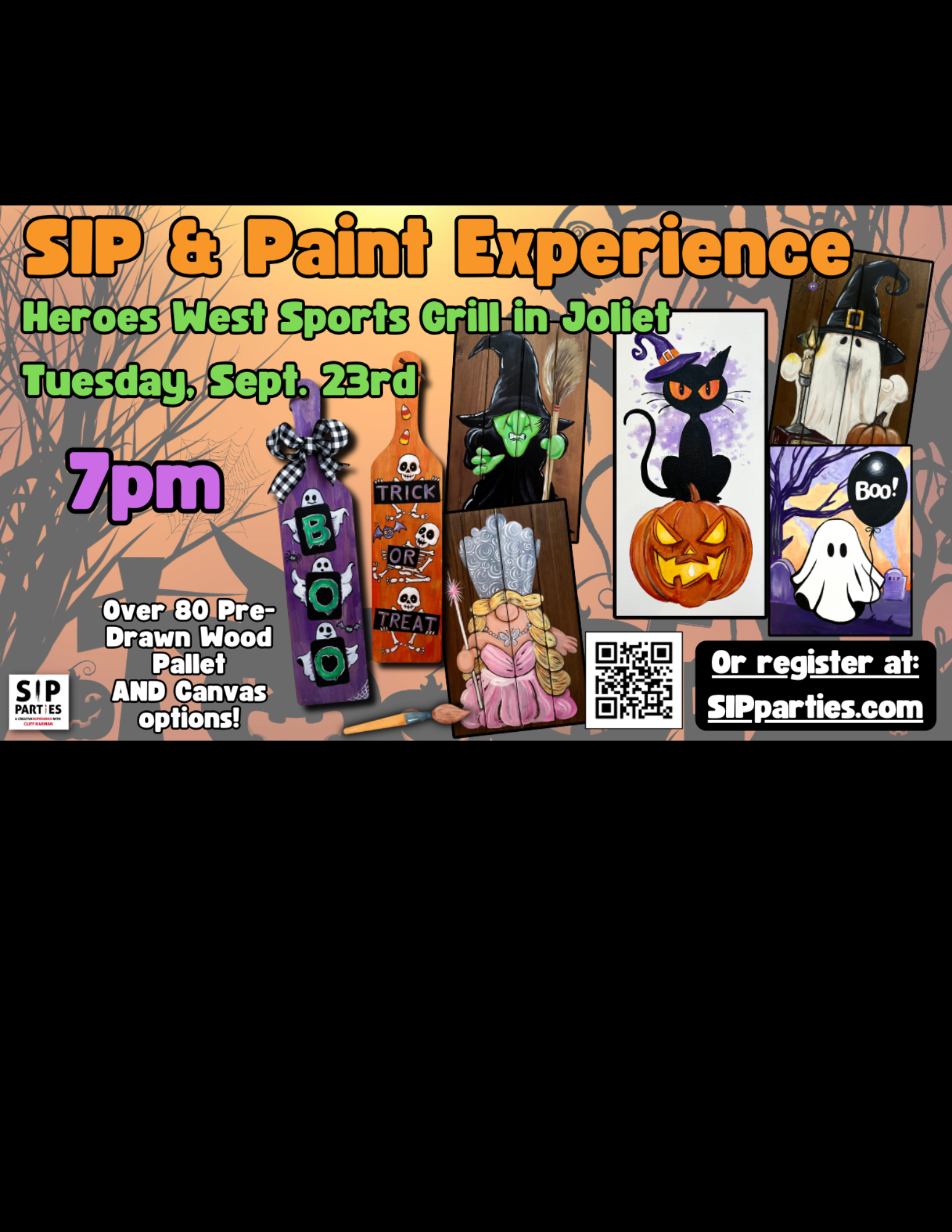 Join Chicagoland’s #1 rated creative experience on Tuesday, September 23rd at Heroes West Sports Grill in Joliet! SIP Parties is a unique twist on your typical SIP & Paint party experience! Enjoy a lively performance that brings humor and audience interaction to detailed art instruction with artist Cliff Harman.  Whether you’re looking to do a girl’s night out or enjoy a date night with the hubby, we are the perfect local activity. Find us at a bar or restaurant in your neighborhood!