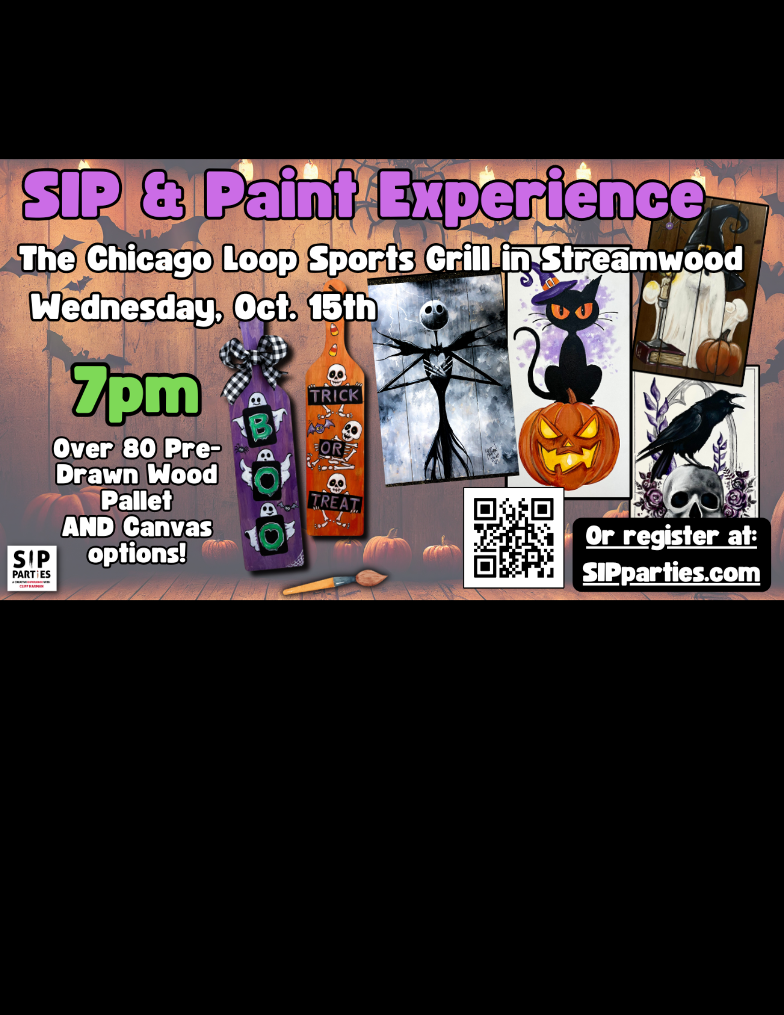 Pre-Drawn SIP & Paint Experience! Chicago Loop Sports Bar in Streamwood. Weds, Oct. 15th 7PM