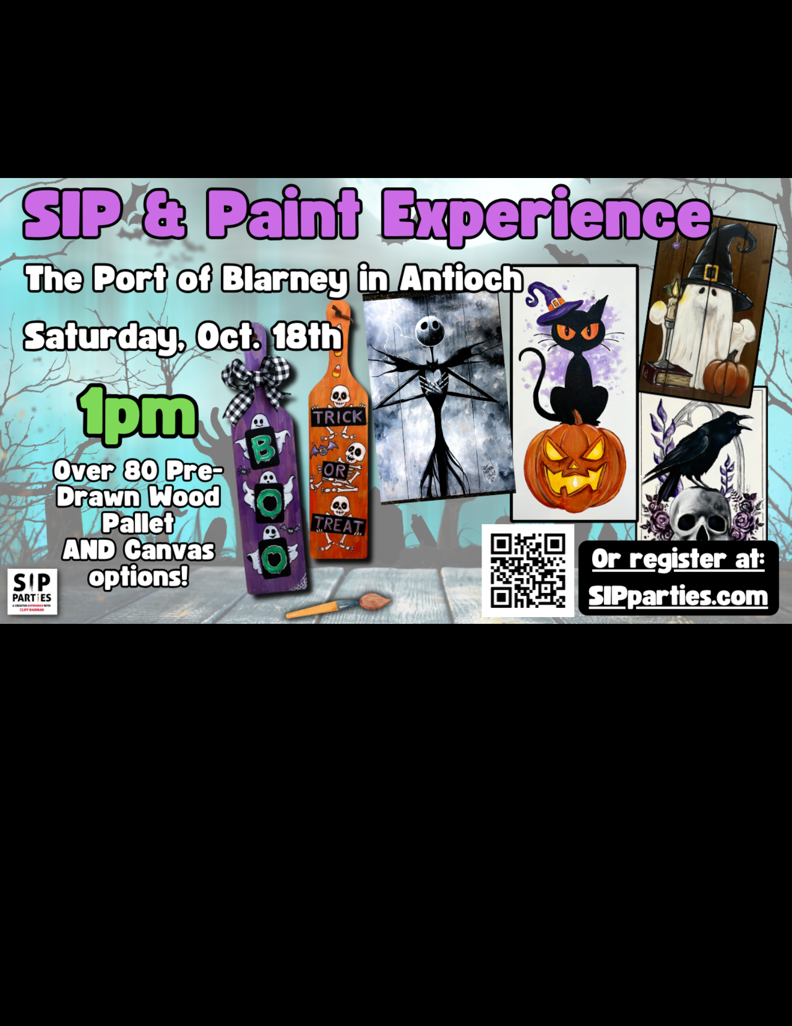 Pre-Drawn SIP & Paint experience at The Port of Blarney in Antioch Saturday, Oct. 18th