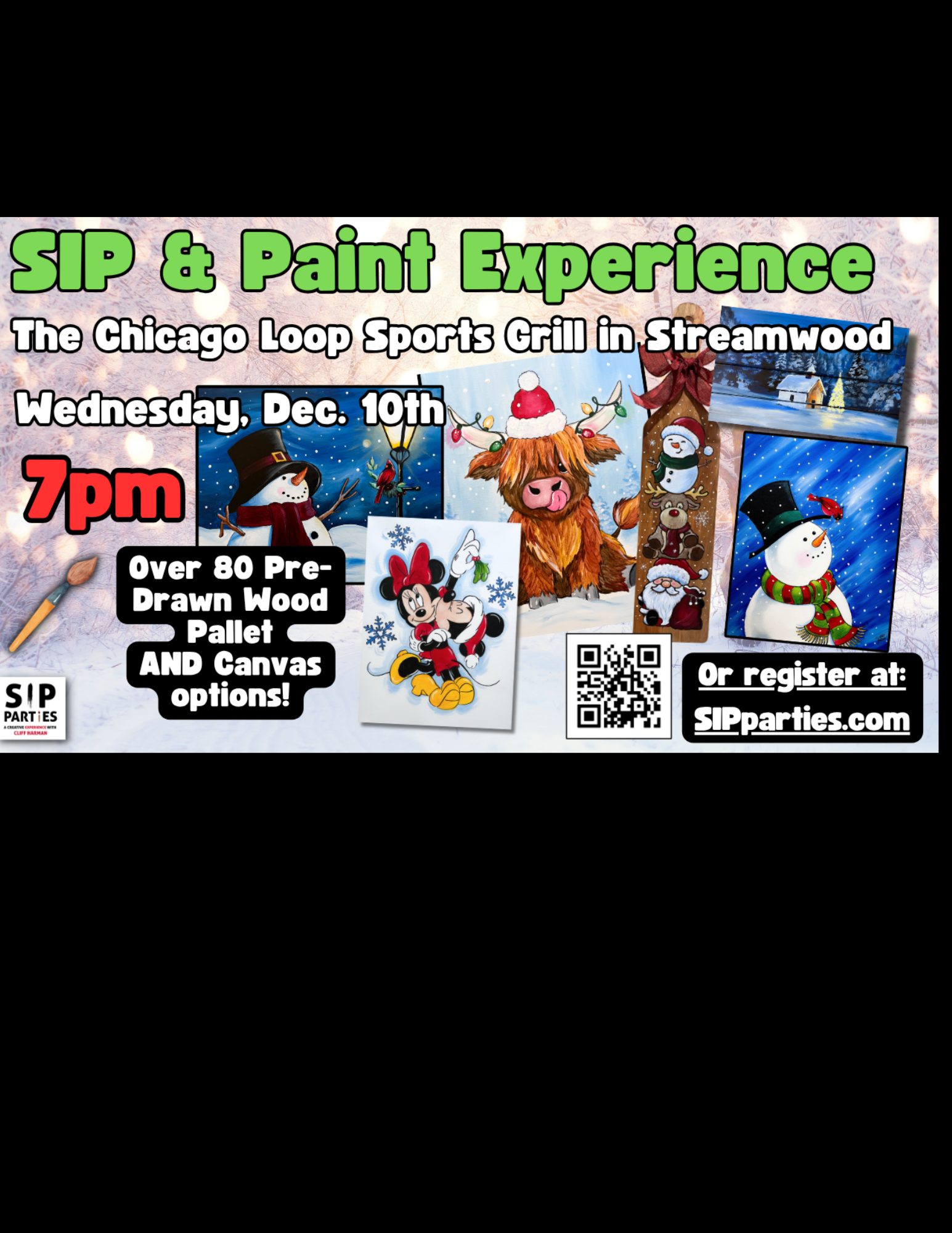 Pre-Drawn SIP & Paint Experience! Chicago Loop Bar & Grill. Wednesday, Dec. 10th 7PM