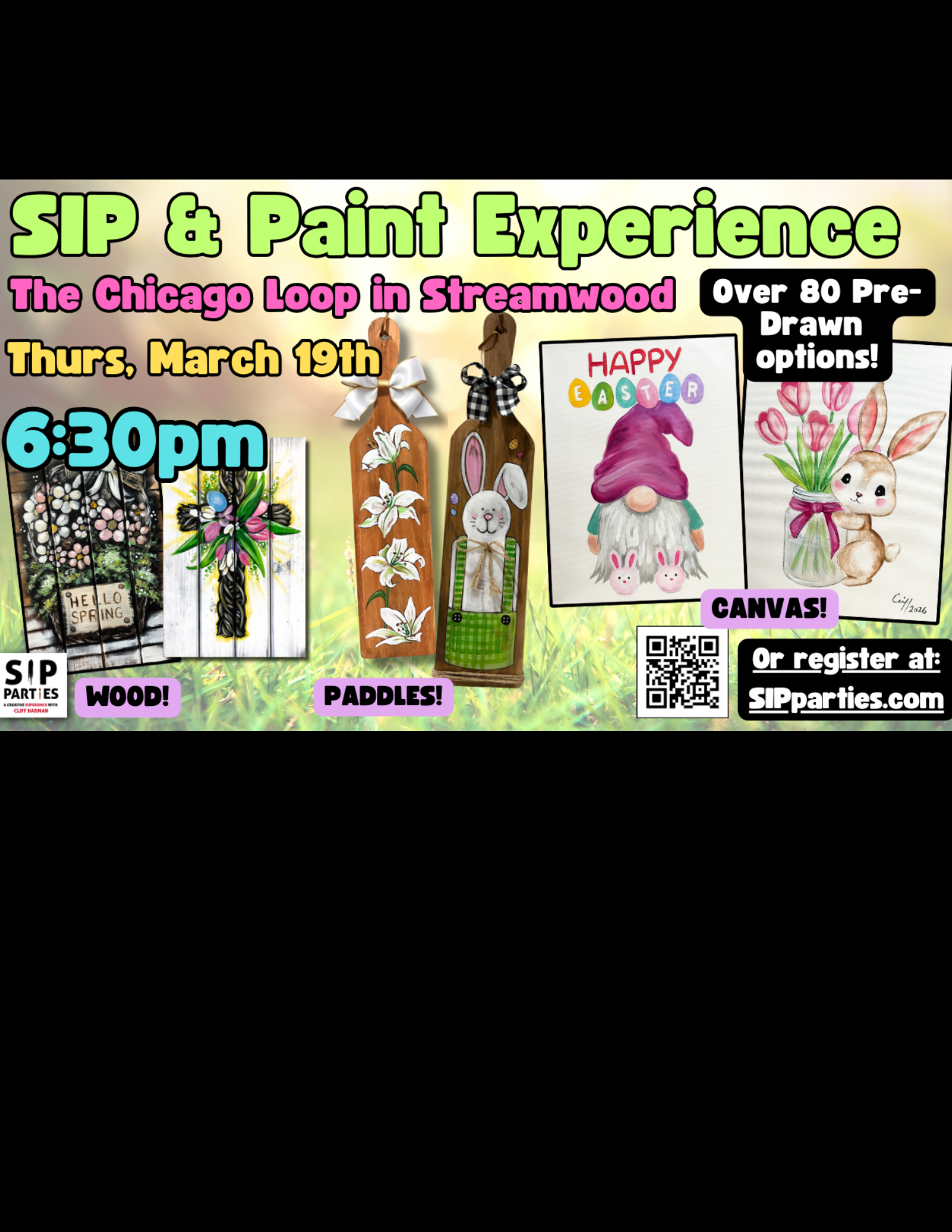Pre-Drawn SIP & Paint Experience! The Chicago Loop. Thurs, March. 19th 6:30PM
