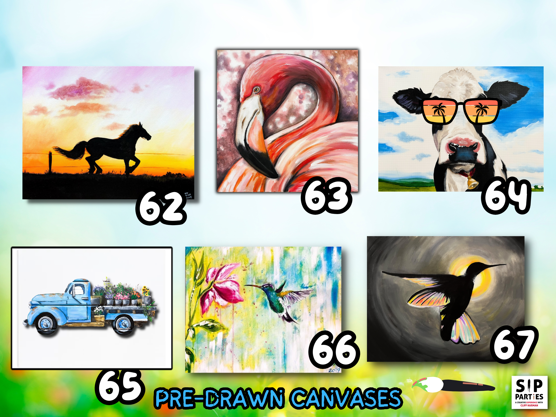 All PRE DRAWN pallets are all outlined in advance. Professional artist Cliff Harman focuses more on artistic technique rather than layout work, this gives us the opportunity to have multiple options for our painters to choose from.  This is not in any way a guarantee of perfection, but a guarantee of a good time. So, show up with a can-do attitude and be ready for some fun!