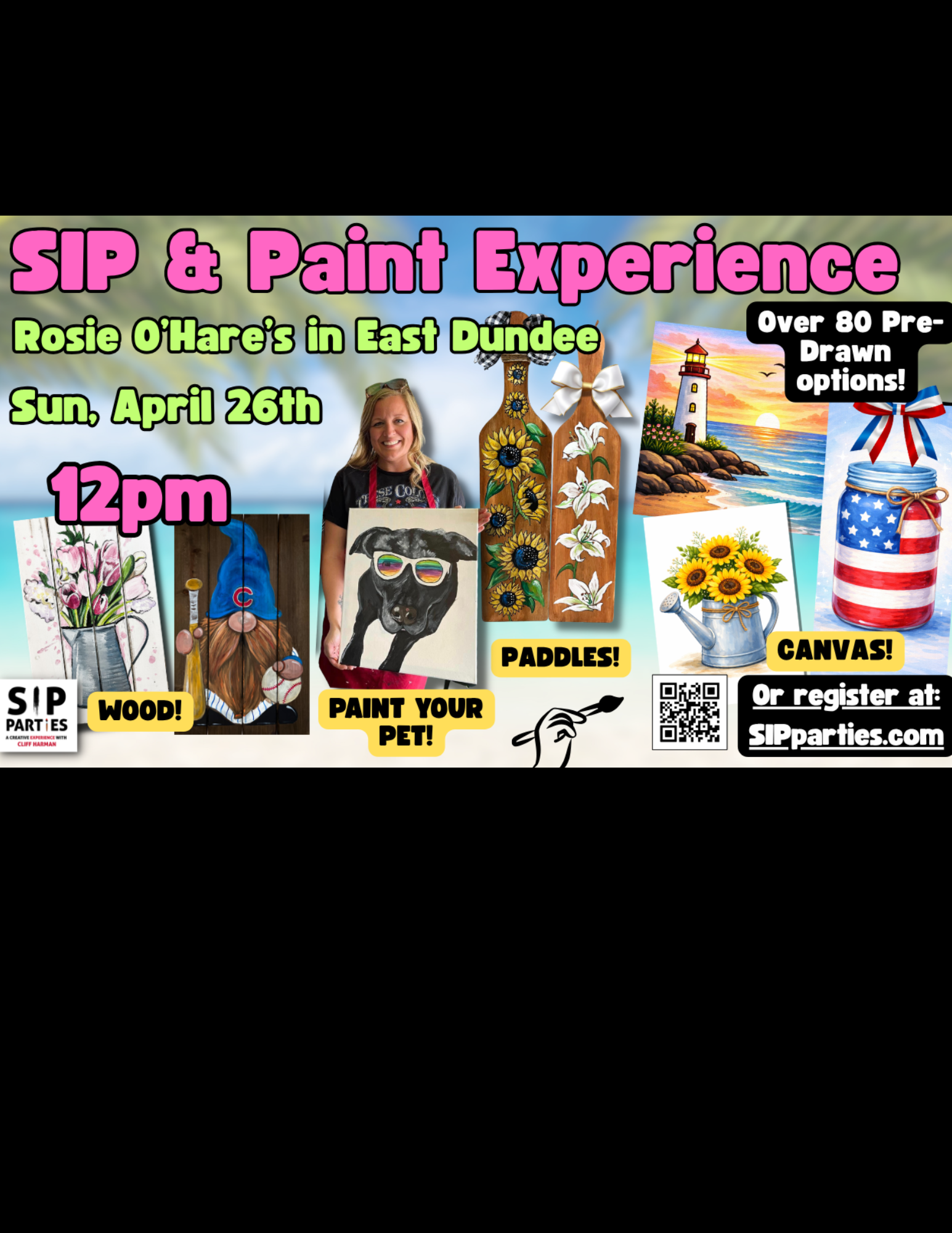 Pre-Drawn SIP & Paint Experience! Rosie O’Hare’s Public House. Sunday, April 26th 12PM