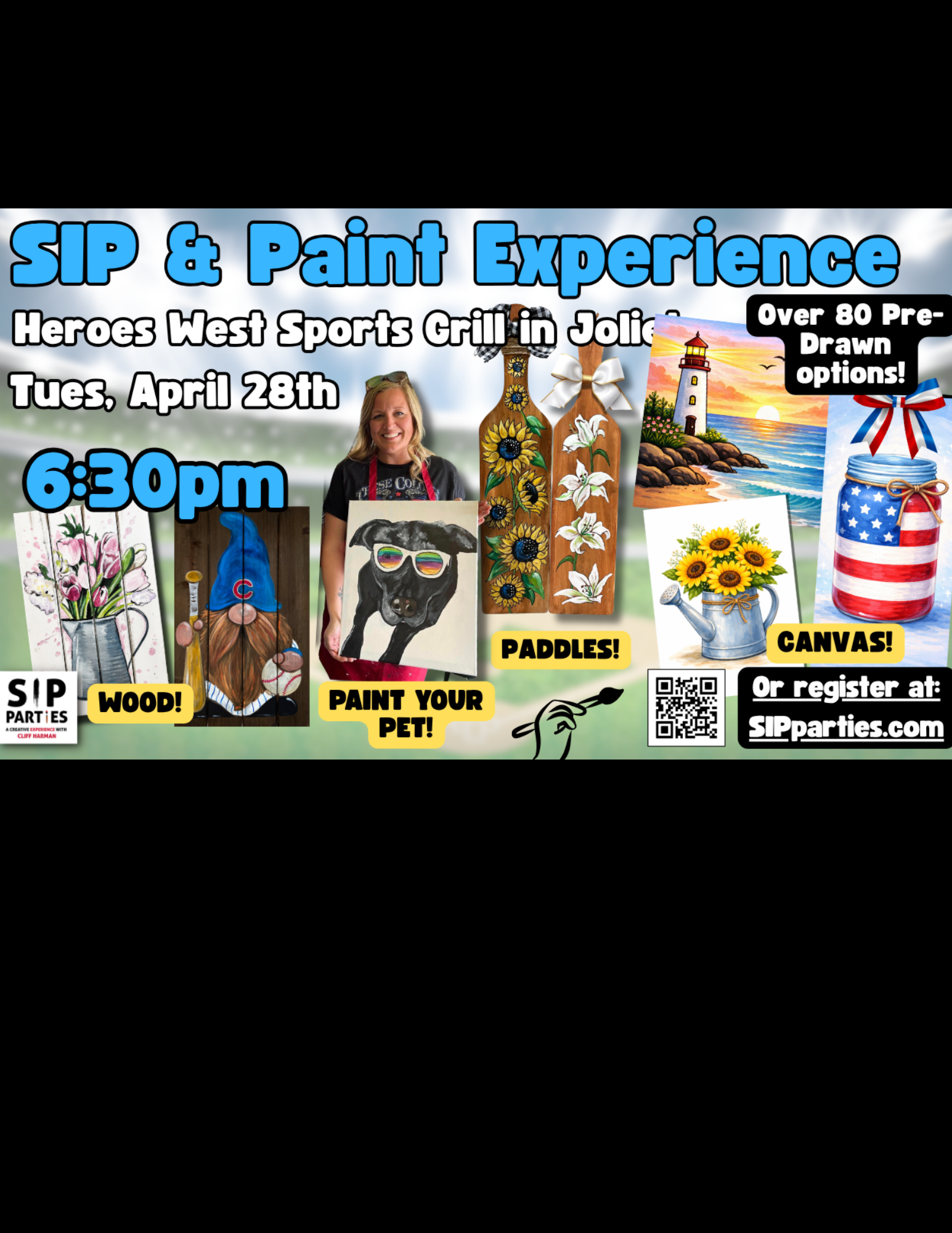 Pre-Drawn SIP & Paint Experience! Heroes West Joliet. Tues, April 28th 6:30PM